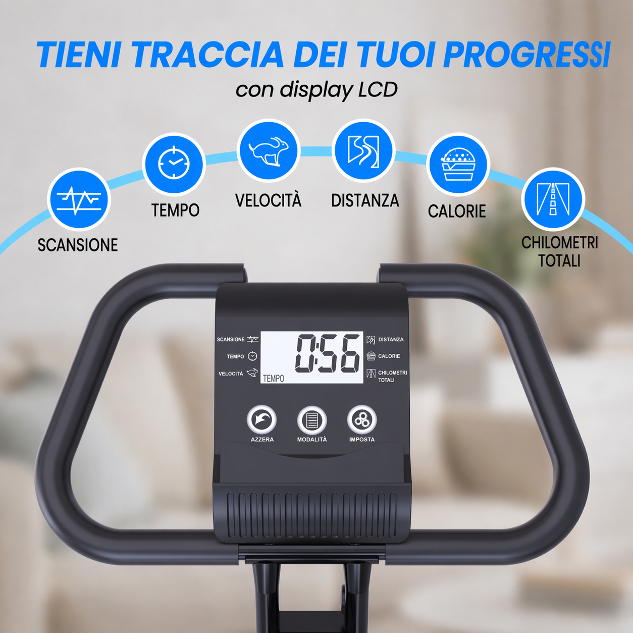 | DISPLAY | LCD: Tempo, distanza, velocità, calorie e pulsazioni |